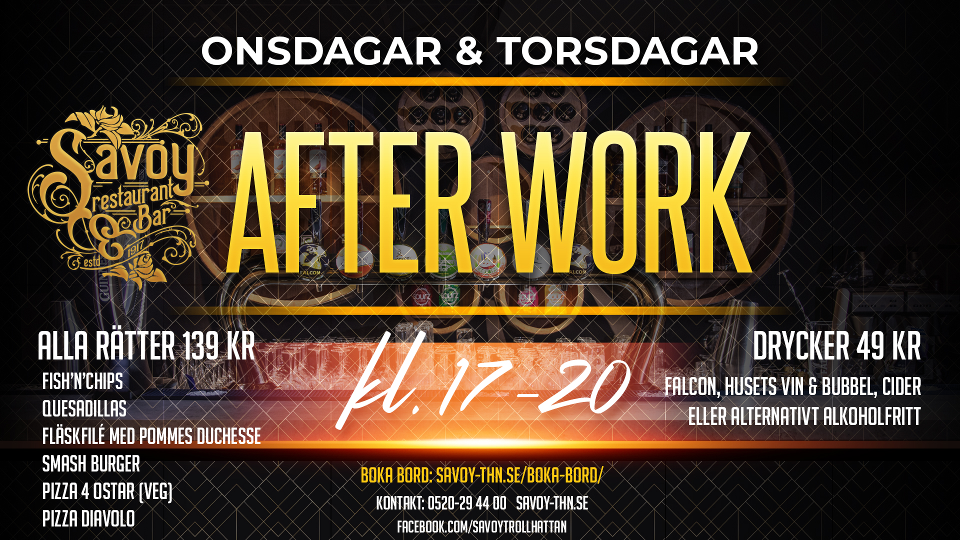 För god mat och dryck, boka bord i god tid. Boka här –> https://savoy-thn.se/boka-bord/