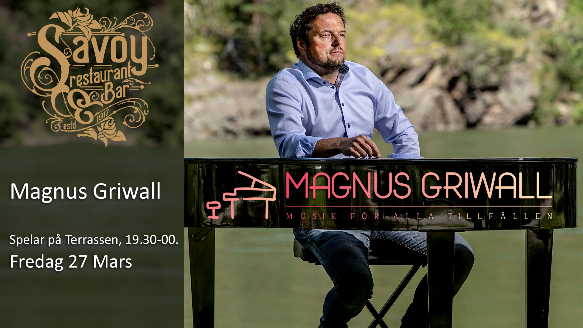 Fredag 27 Mars – Magnus Griwall spelar på Terrassen, 19.30-00. Fredag 27 Mars – Magnus Griwall spelar på Terrassen, 19.30-00. 2026-03-22T22:36:57+00:00Av Thomas Andersson|Våra Event|0 kommentarer Dela detta inlägg, välj din plattform! FacebookXRedditLinkedInWhatsAppTelegramTumblrPinterestVkXingE-post Om författaren: Thomas Andersson Relaterade inlägg Lördag 18 April – Rockabilly Lördag med Spisar Dax på Terrassen, 19-00. Lördag 18 April – Rockabilly Lördag med Spisar Dax på Terrassen, 19-00. Fredag 17 April – Magnus Griwall spelar på Terrassen, 19.30-00. Fredag 17 April – Magnus Griwall spelar på Terrassen, 19.30-00. Torsdag 16 April – After Work klockan 17-20. Torsdag 16 April – After Work klockan 17-20. Onsdag 15 April – Nöjesquiz, klockan 20.00. Onsdag 15 April – Nöjesquiz, klockan 20.00. Lämna en kommentar Avbryt svarKommentar Spara mitt namn, mailadress och hemsidesadress på denna webbläsare för nästa gång jag ska skriva en kommentar. Δ