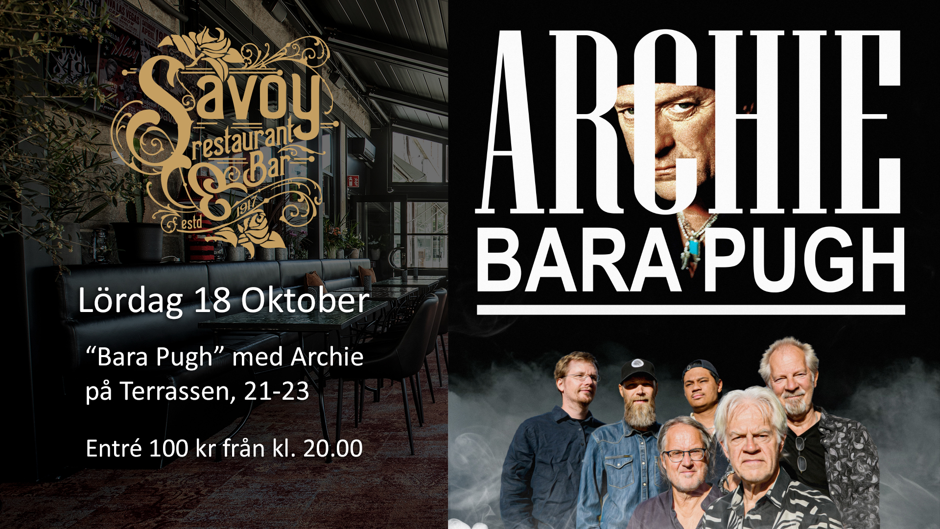 Lördag 18 Oktoberber – ”Bara Pugh” med Archie på Terrassen 20-23. Lördag 18 Oktoberber – ”Bara Pugh” med Archie på Terrassen 20-23. Entré 100 kr från kl. 20.00. 2025-10-12T19:07:46+00:00Av Thomas Andersson|Våra Event|0 kommentarer Dela detta inlägg, välj din plattform! FacebookXRedditLinkedInWhatsAppTelegramTumblrPinterestVkXingE-post Om författaren: Thomas Andersson Relaterade inlägg Fredag 17 Oktober – Jacobsson & Saxin spelar på Terrassen, 21-00. Fredag 17 Oktober – Jacobsson & Saxin spelar på Terrassen, 21-00. Torsdag 16 Oktober – After Work klockan 17-20. Torsdag 16 Oktober – After Work klockan 17-20. Onsdag 15 Oktober – Nöjesquiz, klockan 20.00. Onsdag 15 Oktober – Nöjesquiz, klockan 20.00. Lördagen 11 Oktober – Rockabilly Mayhem Lördagen 11 Oktober – Rockabilly Mayhem Lämna en kommentar Avbryt svarKommentar Spara mitt namn, mailadress och hemsidesadress på denna webbläsare för nästa gång jag ska skriva en kommentar. Δ
